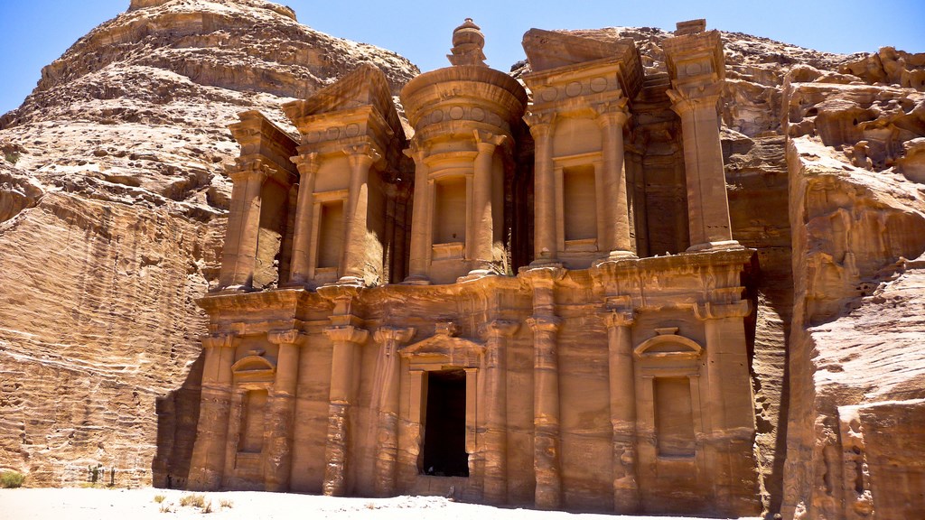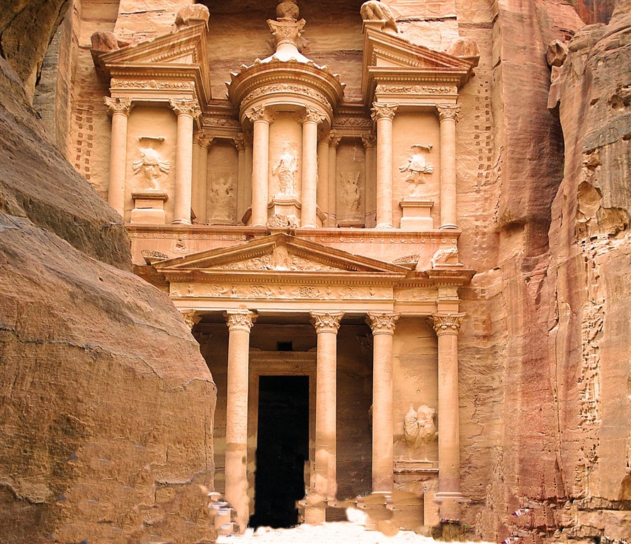 3. den: Po snídani vyrazíme do skalního města Petra , které založili Nabatejci před více jak 2000 lety. Město odráží sílu a svobodu této starověké kultury, která získala své bohatství prostřednictvím karavanního obchodu. Klikatou roklí dojdeme k nejznámější památce "pokladnice" (Treasury), dále přes "ulici fasád", divadlo, královské hrobky až k paláci faraonovy dcery. Ti mladší si mohou vyšlápnout více jak 800 schodů ke klášteru El Deir, odkud je krásný výhled do vádí Arava. Poté přejezd do kempu Wadi Rum, ubytování a večeře.