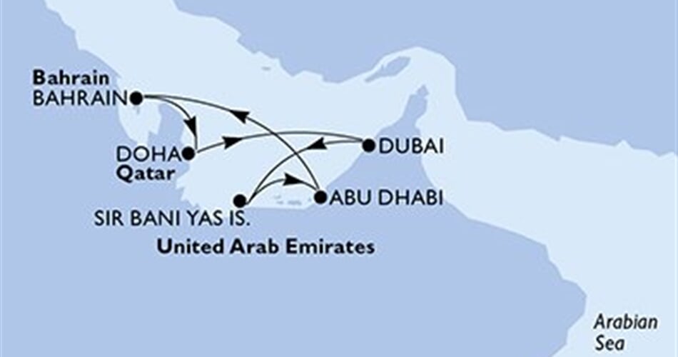 | 7. den | Manáma (Bahrajn) | 07:00 | 18:00 |