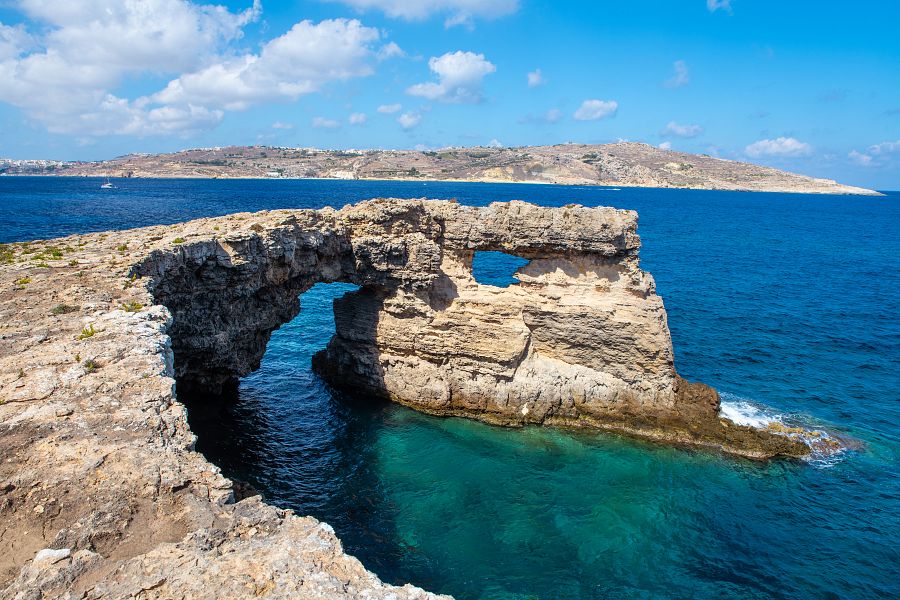 S průvodcem se také můžete vypravit na ostrov Gozo, jehož symbolem je dnes již do moře zřícené Azurové okno , unikátní vápencová skalní brána.