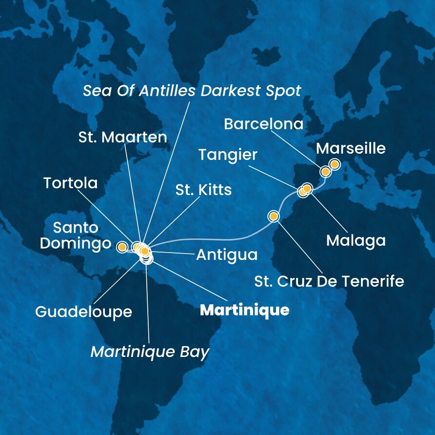 | 8. den | Fort-de-France (Martinik) | 09:00 | 22:30 |