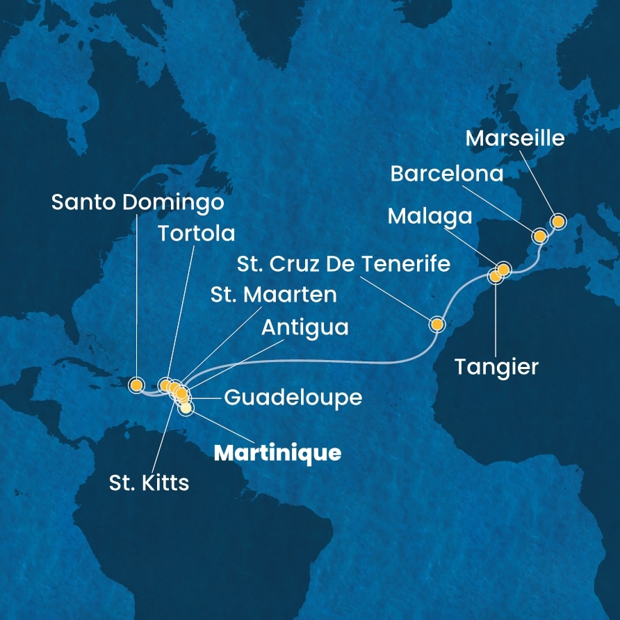 | 8. den | Fort-de-France (Martinik) | 09:00 | 19:00 |