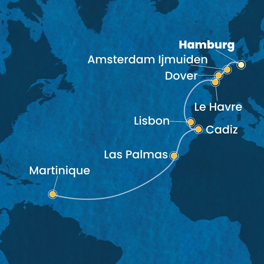 | 18. den | Fort-de-France (Martinik) | 09:00 | - |