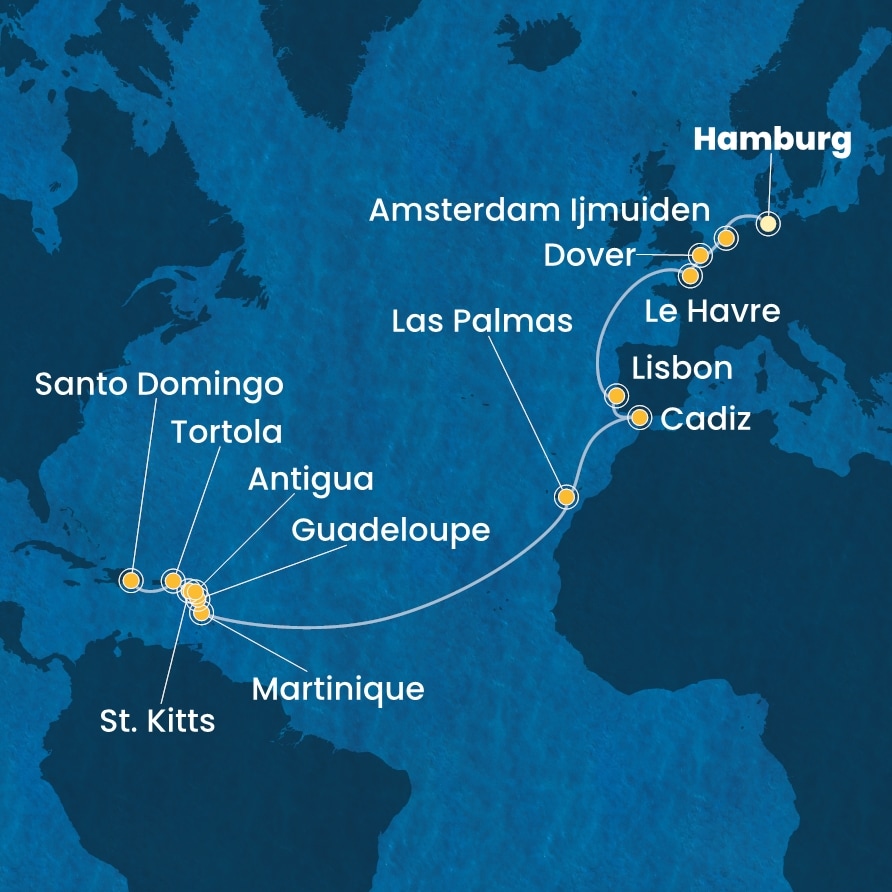 | 22. den | Tortola (Panenské o. (britské)) | 07:00 | 15:00 |