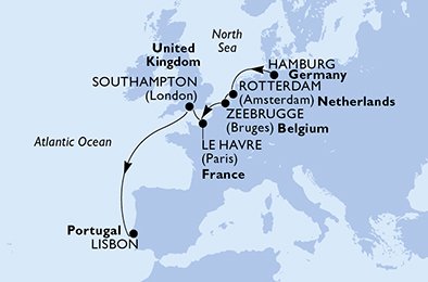 | 5. den | Le Havre (Francie) | 09:00 | 20:30 |