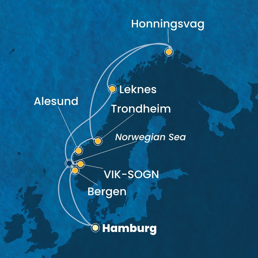 | 7. den | Honningsvag (Norsko) | - | 12:30 |