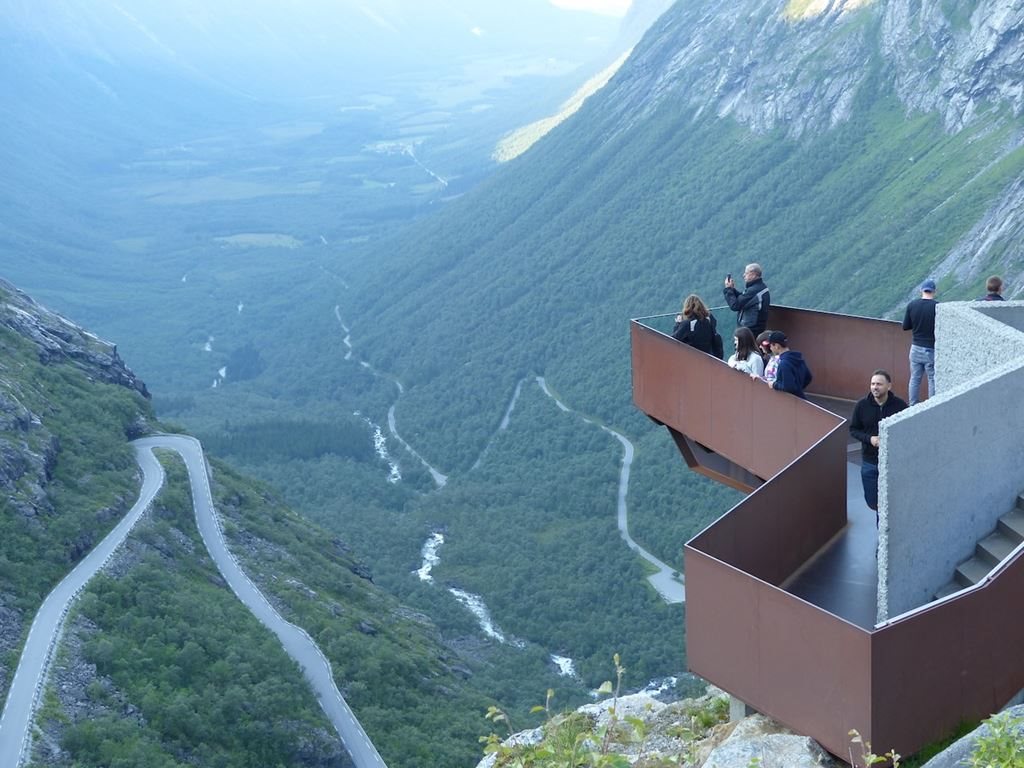 4. den: : Po snídani nás čeká výlet do přímořského Åndalsnes. Lanovkou Romsdalgondolen vyjedeme na horu Nesaksla a odtud podnikneme asi 7 km dlouhou okružní túru s nádhernými výhledy na okolní moře a norskou krajinu. Ti, které turistika neláká, mohou sjet zase dolů a prozkoumat městečko, které nabízí občerstvení, procházky v údolí i pláž. Odpoledne budeme pokračovat do údolí Romsdalen k světoznámé Trolí stěně, která je s výškou 1 100 m nejdelší kolmou stěnou v Evropě, a k vodopádu Slettafossen . Návrat na ubytování.
