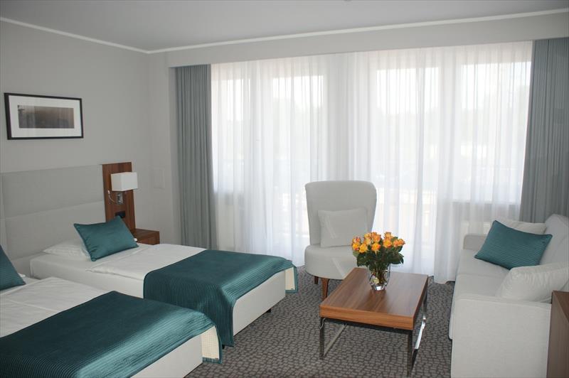 zazemi: v ceně vnitřní bazén 88 m2, sauna a whirlpool, posilovna. Hosté mohou využívat zdarma stolní tenis a kulečník, za poplatek posilovnu.