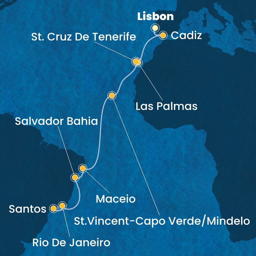 | 14. den | Salvador de Bahia (Brazílie) | 07:00 | 13:00 |