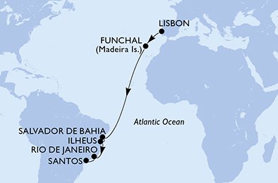 | 11. den | Ilheus (Brazílie) | 08:00 | 18:00 |