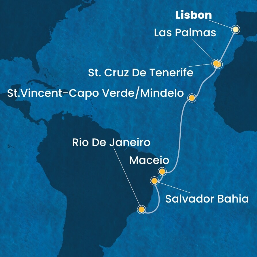 | 13. den | Salvador de Bahia (Brazílie) | 07:00 | 13:00 |