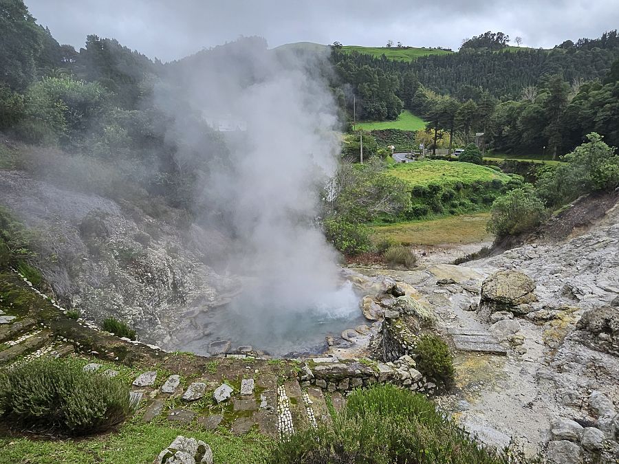 Dopoledne vyrazíme do oblasti Furnas , kde je nejvíce cítit doznívající sopečná aktivita . Tato část ostrova je známá díky termálním pramenům a koupalištím .