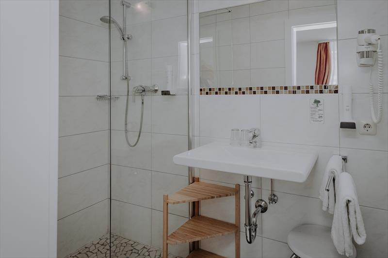 pokoje mají koupelnu s WC, TV-Sat, balkon. 2 lůžkové pokoje jsou cca 20 m2 veliké, 2-3 lůžkové cca 23 m2 a rodinné (2 místnosti) cca 35 m2.