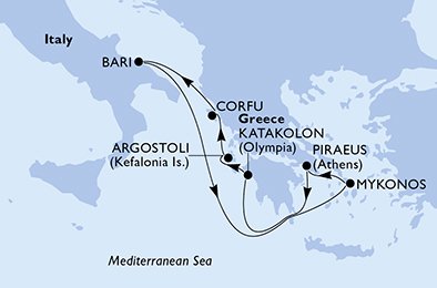 Rozšířená penze formou špičkového bufetu i v restauraci se servírovaným menu dle vlastního výběru. Stravování zajištěno nejméně 5x denně. Snídaně, obědy i večeře, v bufetu navíc odpolední a půlnoční rychlé občerstvení (pizza, sendviče…). Základní nealkoholické nápoje (voda, čaj dle vlastního výběru, překapávaná káva, mléko) dostupné 24 hodin denně v bufetové restauraci z nápojových automatů. K snídaním navíc ovocné šťávy. Nápoje na všech barech a v servírovaných restauracích za poplatek. Součástí některých kategorií ubytování, např. MSC Yacht Club je all inclusive. U ostatních je možné objednat předem cenově zvýhodněné nápojové balíčky typu all inclusive (více variant lišící se rozsahem zahrnutých nápojů, s neomezenou konzumací) Nabídku nápojových balíčků u potvrzených rezervací předložíme na vyžádání.