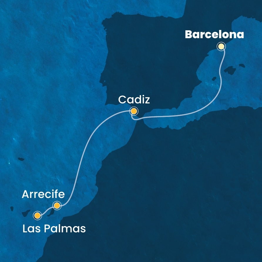 | 3. den | Cadiz (Španělsko) | 07:00 | 13:00 |