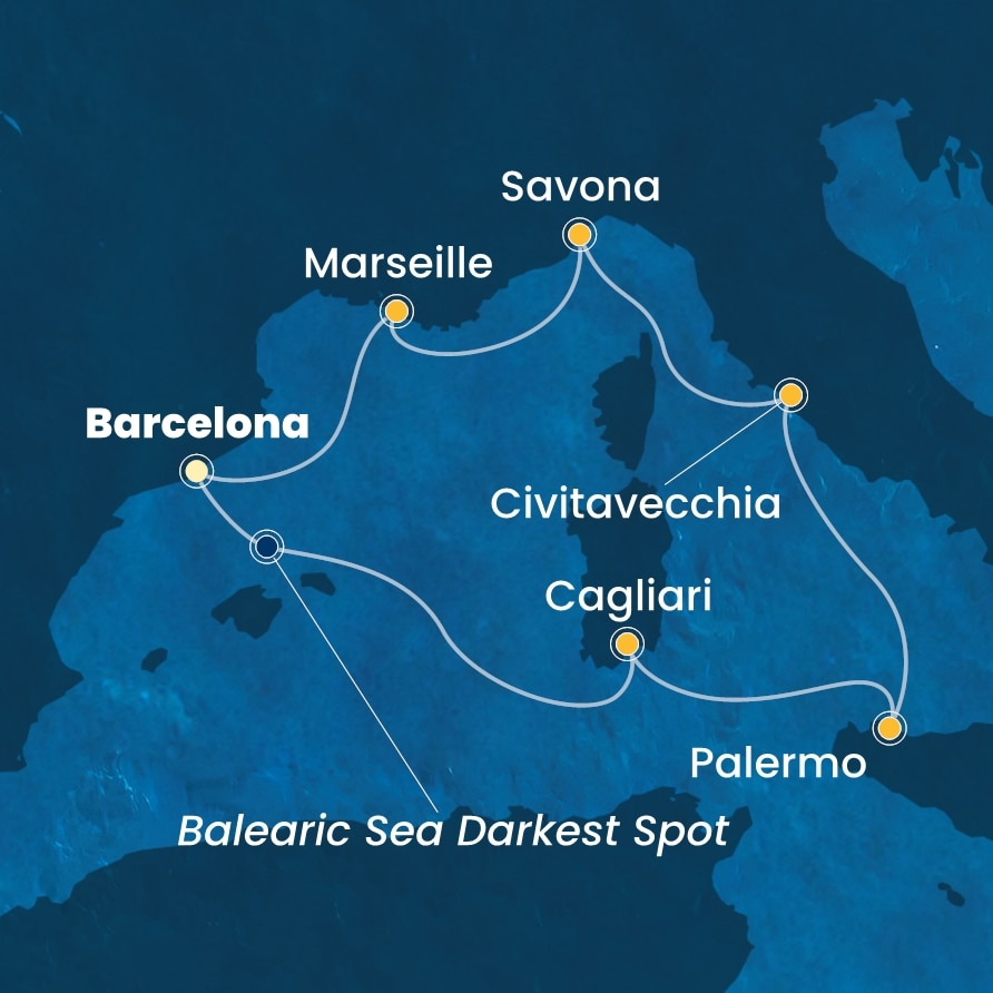 | 7. den | Marseille (Francie) | 08:30 | 18:30 |