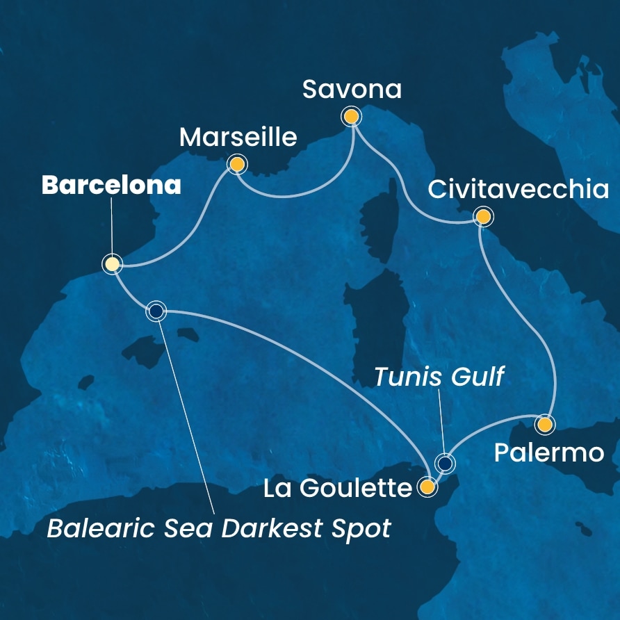 | 4. den | Palermo (Itálie) | 08:00 | 16:30 |
