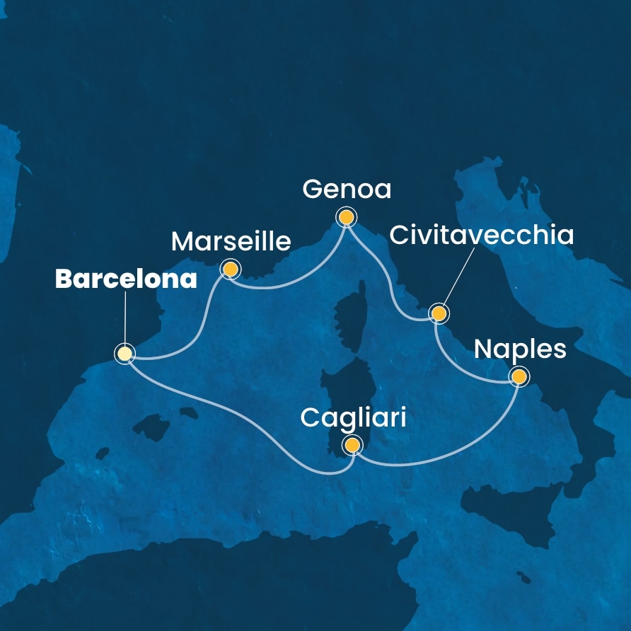 | 3. den | Cagliari (Itálie) | 07:00 | 16:00 |