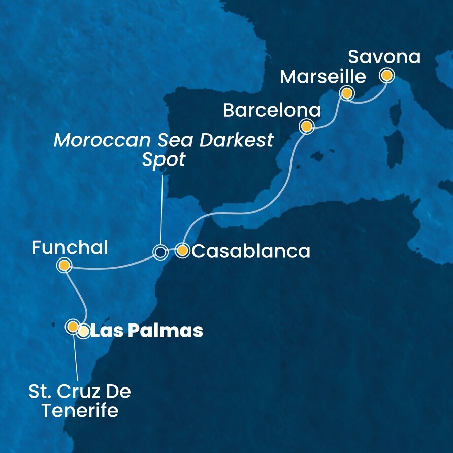 | 5. den | Casablanca (Maroko) | 06:00 | 19:00 |