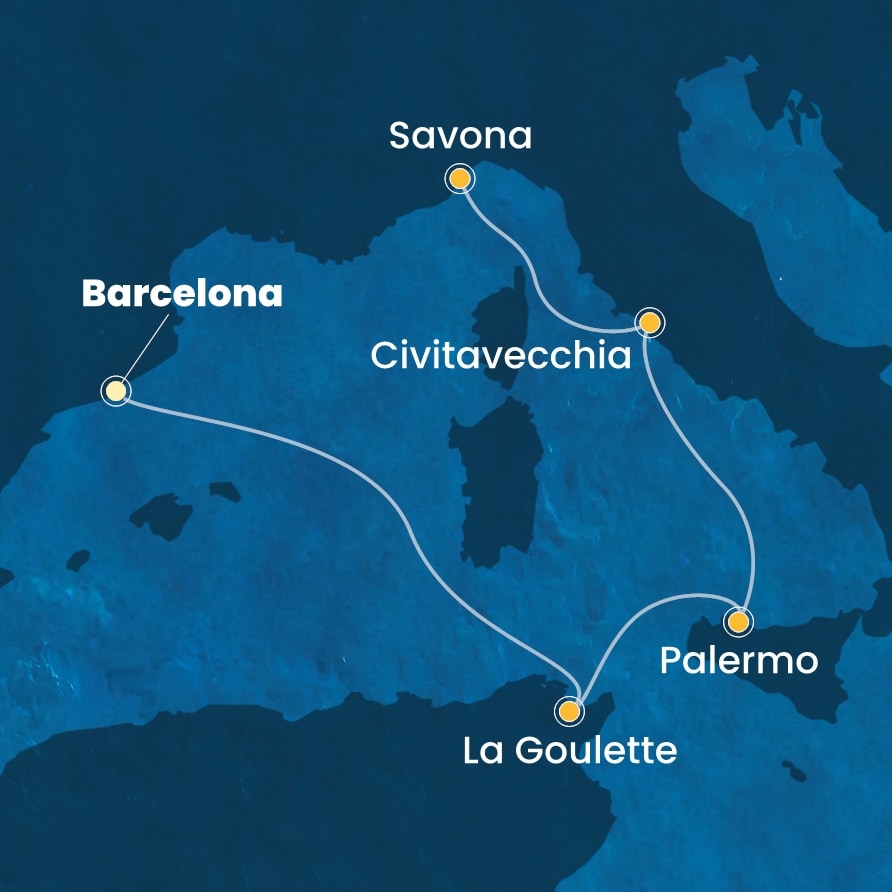 | 4. den | Palermo (Itálie) | 08:00 | 16:30 |