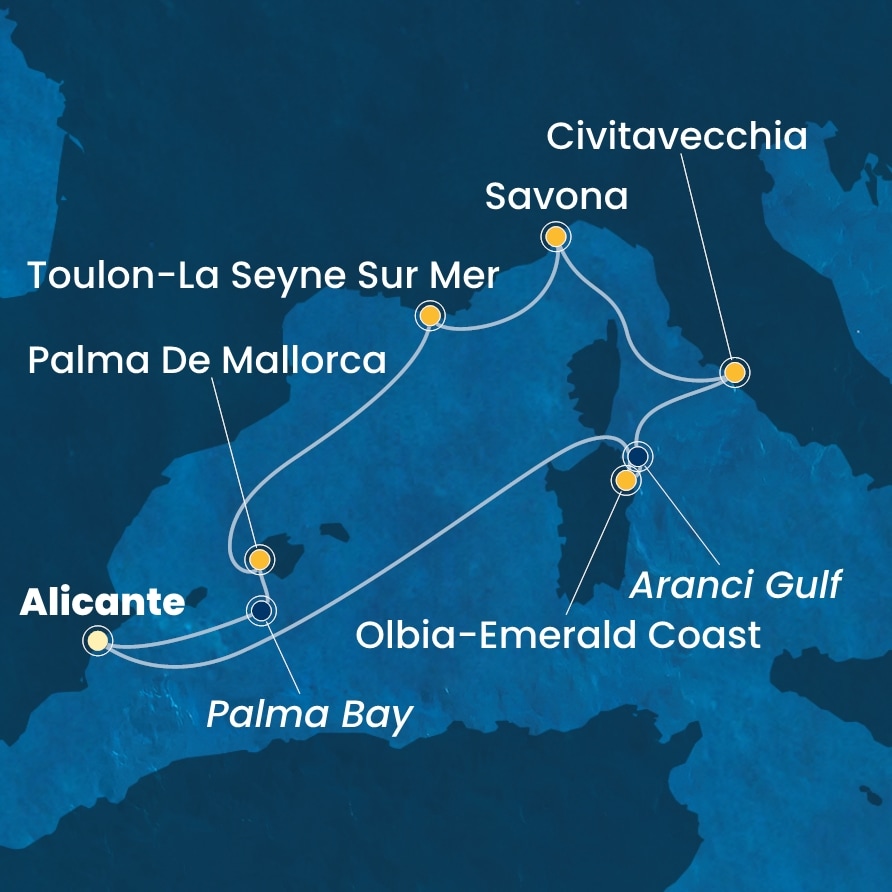 | 8. den | Alicante (Španělsko) | 09:00 | - |