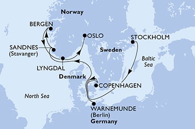 | 8. den | Lyngdal (Norsko) | 08:00 | 17:00 |