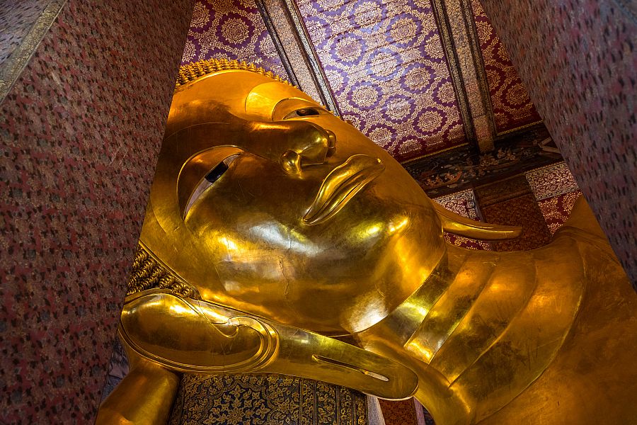 3. den: Dnes nás čeká Zlatá hora a prohlídka nejznámějších bangkokských chrámů. Poté se lodičkami dostaneme na nočními trhy Khao San, na kterých si zájemci mohou vyzkoušet i tradiční thajskou masáž. Po snídani se vydáme objevovat Bangkok z ptačí perspektivy. Vyrazíme totiž na jediné vyvýšené místo města, tzv. Zlatou horu . Po nízkých schodech vystoupáme do výšky 80 metrů a vychutnáme si  panoramatický výhled do všech světových stran .  Odpoledne budeme pokračovat poznáváním nejznámějších památek thajské metropole. Nejprve si společně prohlédneme  Velký palác , který sloužil jako oficiální rezidence thajských panovníků až do roku 1946. Poté se společně vydáme k  chrámu  Wat Pho, nejstaršímu a největšímu chrámu v celém Bangkoku. Prohlédneme si zde skvostnou zlatou sochu ležícího Buddhy, dlouhou 46 metrů.  V pozdních odpoledních hodinách pak společně doplujeme na lodičkách na druhou stranu řeky, kde nás bude čekat návštěva posledního chrámu dnešního dne, tzv.  Wat Arun , který nese prvky buddhismu i hinduismu a proslul především nádhernou sochařskou a keramickou výzdobou. Po návštěvě chrámu pojedeme prozkoumat  noční trhy Khao San , kde si užijeme labyrint stánků, v nichž pouliční prodavači nabízejí obrovské množství různých suvenýrů a tradičního thajského zboží. Můžeme si zde vychutnat i tradiční masáž .  Společný návrat na hotel typickým thajským dopravním prostředkem - tuk tukem v pozdních večerních hodinách.