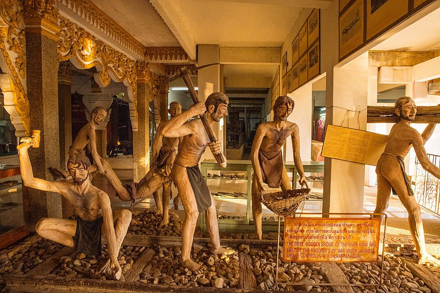 6. den: Dnešek věnujeme poznávání města Kanchanaburi, jehož historie se pojí s 2. světovou válkou. Uvidíme slavný most přes řeku Kwai.  V brzkých ranních hodinách odjezd autobusem do provinčního města Kanchanaburi, v němž za druhé světové války Japonci za nelidských podmínek nutili válečné zajatce ke stavbě železničního mostu přes řeku Kwai a náročnému budování železnice do Myanmaru. Nejprve se společně podíváme na  Vojenský hřbitov Spojenců  s jednoduchými náhrobky bezmála 7 000 převážně britských a australských zajatců. Po obědě v místní restauraci se společně vypravíme ke zbytkům oblouků tohoto ocelového mostu, jehož střední část byla zničena spojeneckým bombardováním na sklonku války. Projedeme se také vlakem po části původní železnice. Z nádraží se vám naskytne nejlepší výhled na most přes řeku Kwai, kterému se často přezdívá „ Most smrti “. Návrat na hotel ve večerních hodinách.