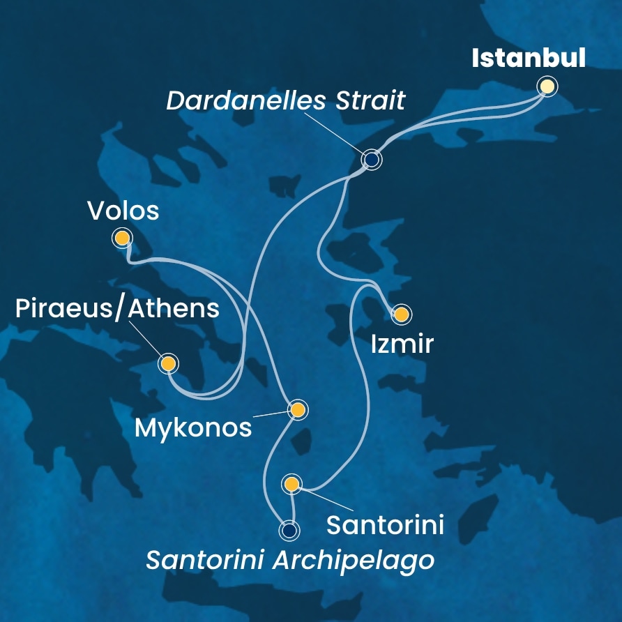 | 3. den | Santorini (Řecko) | 08:00 | 18:30 |