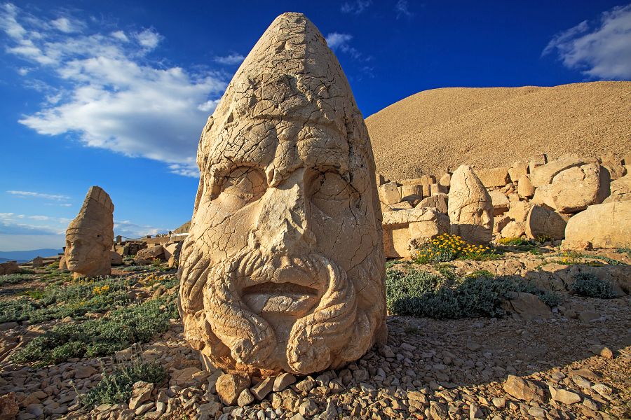 Užijeme si  dechberoucí východ slunce . Prozkoumáme  významné archeologické památky,  jako je  torzo oltáře, Diův trůn,  a zejména  kamenné hlavy řeckých a perských bohů , které jsou umístěny nad domnělým  hrobem krále Nemruta .
