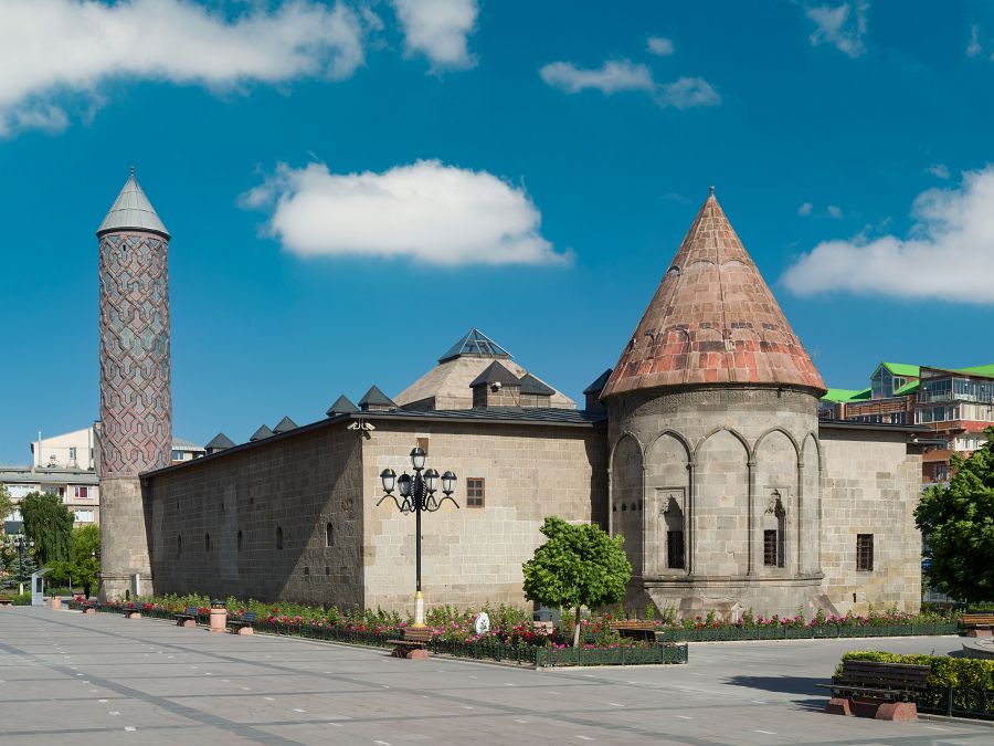 Při naší procházce městem nám neunikne ani mešita  Erzurum Ulu Cami , komplex mausoleí  Üc Kümbetler  a další náboženská škola  Yakutiye Madrasa .