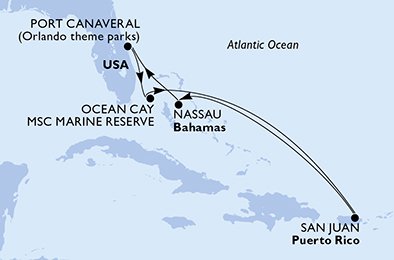 | 2. den | Ocean Cay MSC Marine Reserve (Bahamy) | 08:00 | 22:00 |